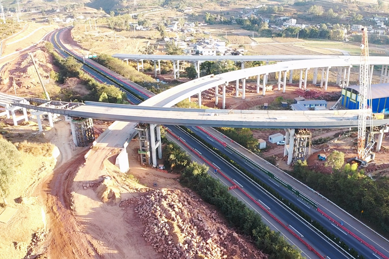 12月8日,钢构公司承建的永金高速永仁至大姚段秧鱼坝互通立交C匝道1号大桥钢箱梁顶推到位。
