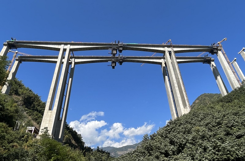 12月3日,永勐高速南榨河大桥右幅13#墩边跨合龙段浇筑完成。