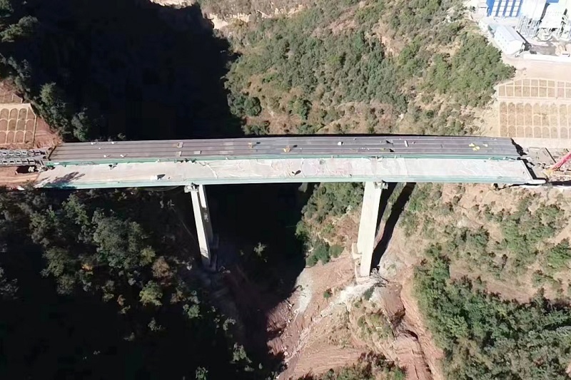 11月20日,钢构公司承建的永金高速永仁至大姚段陈家沟大桥项目右幅钢箱梁提前10天顶推到位。