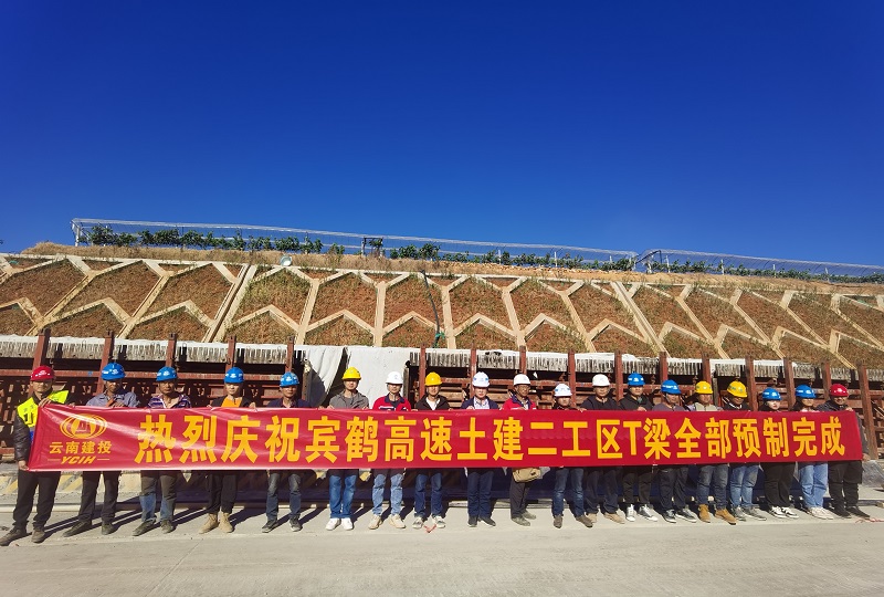 11月19日晚,宾鹤高速年底通车段二工区T梁预制浇筑工作全部完成。