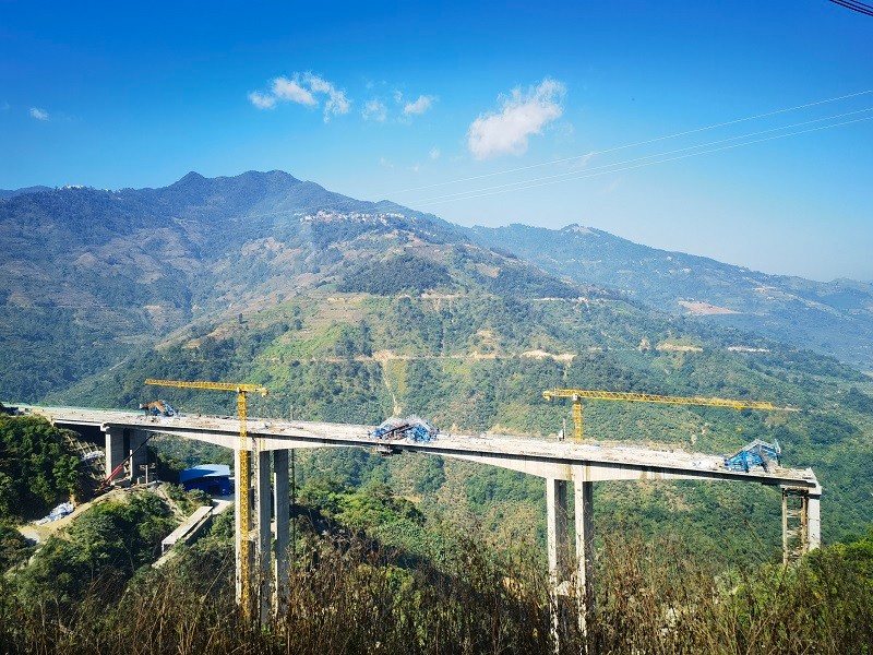 11月12日晚,元绿高速第五合同段小蚌嘎2号大桥左幅中跨合龙。