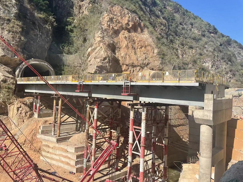 大桥钢箱梁全长59米,重约400吨,位于鹤庆至剑川至兰坪高速公路沙溪支线,该地段地势险要,大桥坐落于水流湍急的黑惠河之上,四周皆是悬崖峭壁,施工建设难度不言而喻。