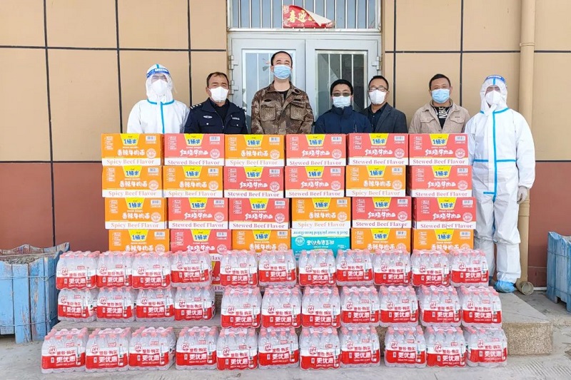 面对复杂严峻的疫情防控形势,第一水利水电公司为普洱市思茅区、新疆阿克苏地区温宿县佳木镇卡点值守人员送去矿泉水、方便面、木炭等后勤保障物资。
