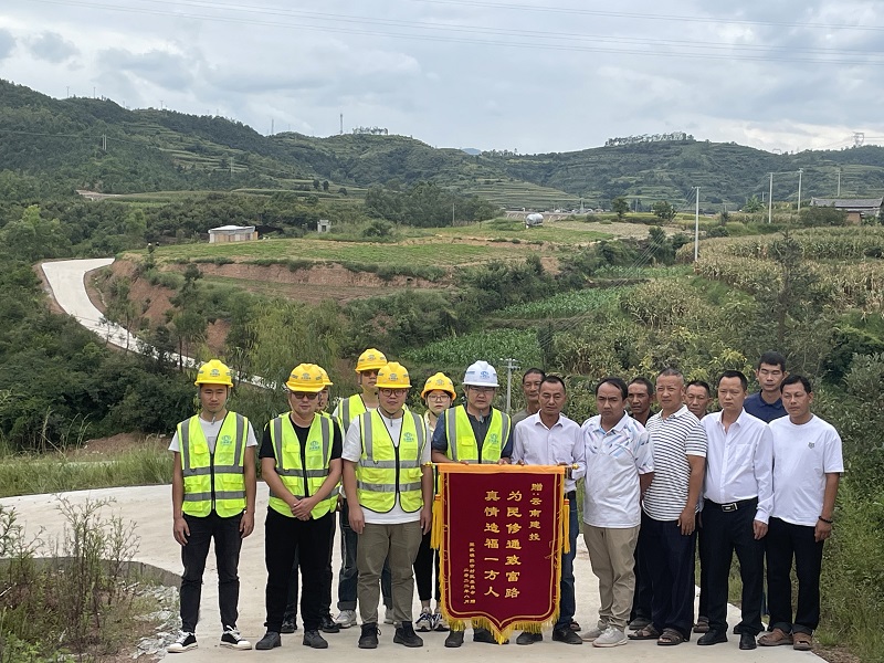 9月19日,拉古村委会驻村第一书记陈云恒一行代表宜就镇拉古村民为九公司永大高速四分部项目部送来了印有“为民修通致富路 真情造福一方人”字样的锦旗,表达对项目部的感谢之情。