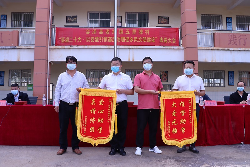 9月16日,九公司携手世界杯官网合作平台信访局驻村工作队在会泽县者海镇五里牌村大桥小学开展“喜迎党的二十大 以党建引领基层治理促乡风文明建设”表彰活动。