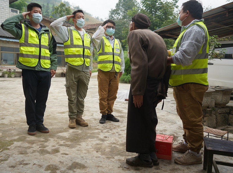 在两天的走访慰问中,驻村队员嘘寒问暖,和老人们热心交流,宣传防疫知识。里底村77岁的留守老人代杰会对大伙儿上门看望满是感激,临别之际硬要送上自己种的嫩南瓜。在退伍老军人肖和全家中,91岁的他和大家讲起参战往事,同是退伍军人的3名驻村队员听完老军人曾经枪林弹雨的故事,列队向肖和全敬礼,老人也缓缓站了起来,抬起颤抖的右手向后辈回礼……