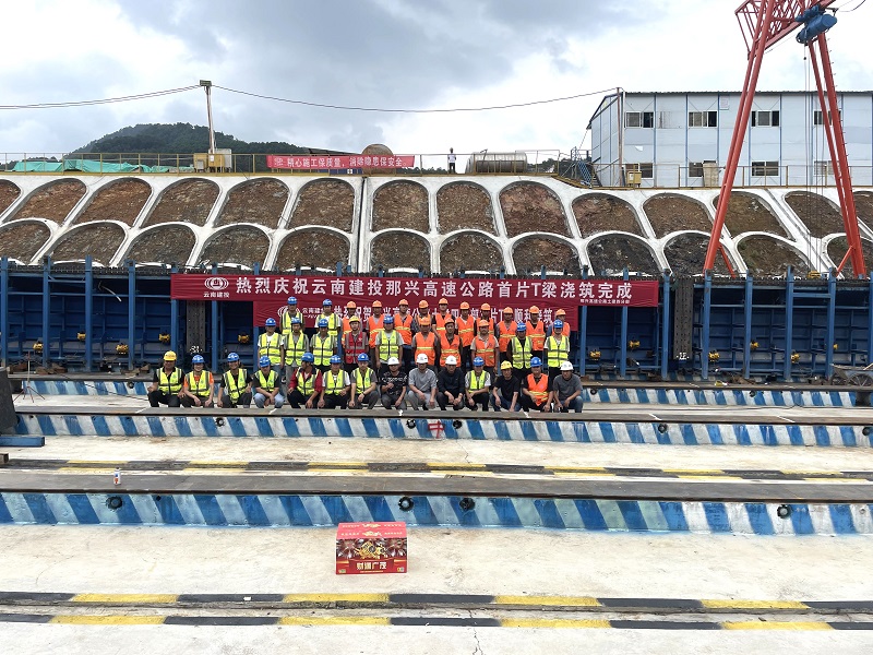 9月10日上午,正逢中秋佳节。由总承包公司承建的那兴高速项目四分部在历时5个多小时的持续奋战后,成功完成首片T梁浇筑,标志着那兴高速全线第一片T梁成功就位。