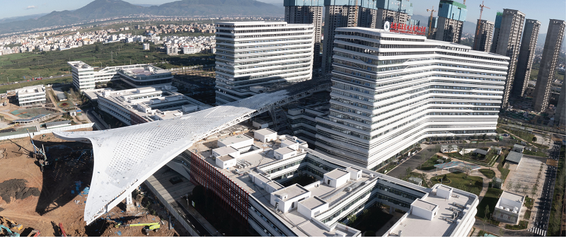 滇东北区域医疗中心医院以肿瘤、心血管、呼吸、神经、创伤五大专科为主,是一所集医疗、教学、科研、预防、急救于一体的大型医院。医院参照国家区域医疗中心建设标准和三甲医院建设标准建设。项目总投资63.06亿元,规划用地1072.5亩,建筑面积68.56万平方米,规划总床位为5000床。
