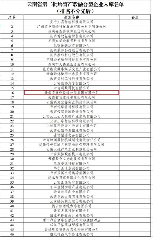 近日,云南省第二批培育产教融合型企业名单公布,包括世界杯官网合作平台在内的46家企业入选。