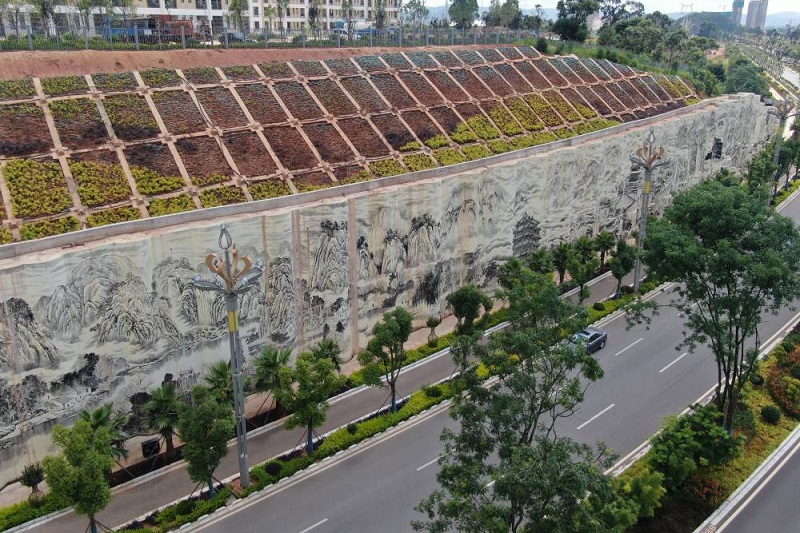 “提高边坡抗滑桩支护施工效率”QC课题,依托安宁市二专线(螳螂川至龙山立交)改造工程,采用机械成孔的圆形抗滑桩板墙提高边坡支护施工效率,安全高效完成安宁市二专线改造工程800米长抗滑桩板墙施工,同时结合壁画长廊呈现的外部观感,与道路绿化景观相呼应,形成立体式市政道路景观。