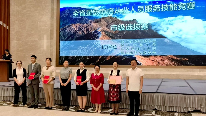本次技能竞赛活动由保山市文化和旅游局主办,腾冲官房大酒店、青华海官房花园酒店、保山官房大酒店、腾冲世纪金源大饭店、兰都饭店、腾冲空港酒店、保山兰都饭店7家星级饭店(高品质酒店)的19名选手参加了前厅服务、客房服务、中餐服务、西餐服务4个项目的比赛。