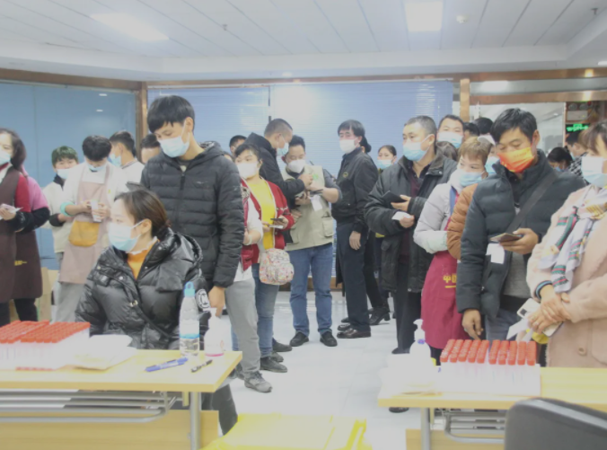 此次核酸检测从12月26日开始,12月28日截止,分3个采集小组,现场取样、登记、分拣、统计,按照片区有序进行。完成全部1800余份核酸采样工作,共采集核酸样本。免费发放的围裙商户凭身份证即可免费领取。
