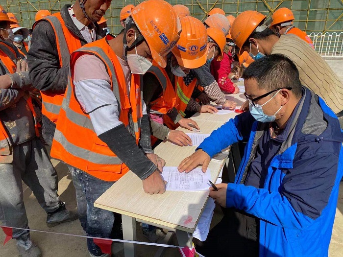 近期,昆明呈贡区出现疫情,疾控中心项目与存在疫情传播风险的昆明医科大学第一附属医院(呈贡医院)仅一墙之隔。加之岁末年初,工地人员流动性大,为项目疫情防控工作带来极大挑战。此次核酸检测后,项目部还向大家进行了疫情防控工作交底,与全体人员签订了健康承诺书。