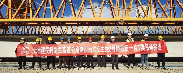12月22日,鹤剑兰高速剑川南立交桥主线2号桥T梁全部架设完成,标志着鹤剑兰高速年内通车段主线桥梁全部架设完成。