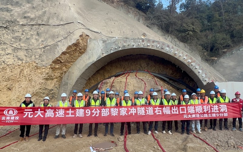 12月13日,元大高速土建九分部项目黎家冲隧道右幅出口端顺利进洞。