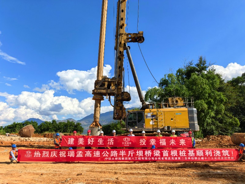 11月21日,瑞丽至孟连高速公路土建十二工区半斤坝2号大桥首根桩基顺利完成浇筑,桥梁工程施工正式启动。