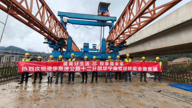 11月10日,随着最后一片预制箱梁精准落位澄华高速华宁南枢纽F匝道桥支座上,华宁南枢纽F、G、H三座匝道桥实现全面贯通。