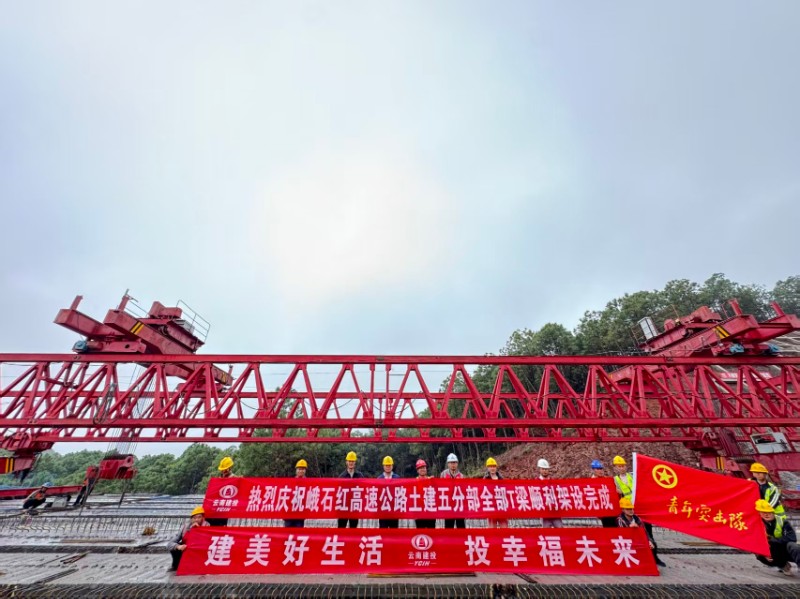 11月9日,随着铜厂山大桥最后一片30米长的T梁稳稳落在桥墩支座上,峨石红高速公路(玉溪段)项目五分部T梁架设任务圆满完成,为后续桥面铺装、路面施工等工序奠定了坚实基础。
