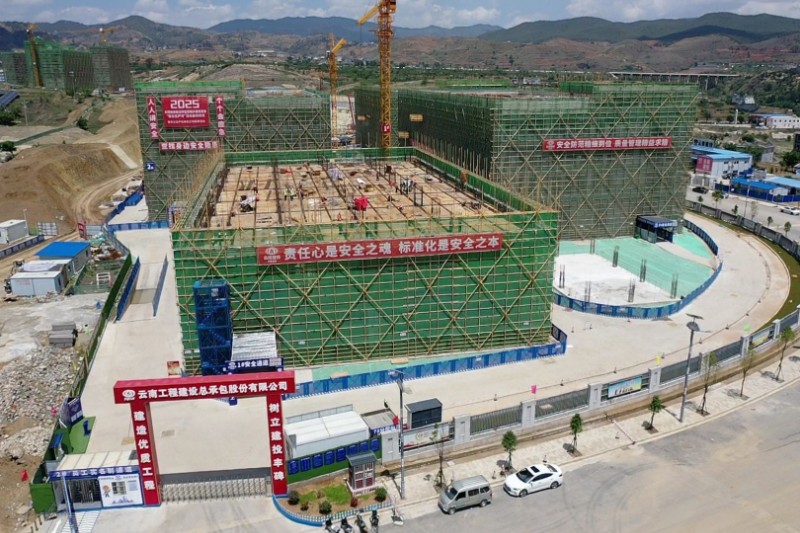 10月30日,沪滇协作产业园一期工程共5栋建筑主体结构封顶。
