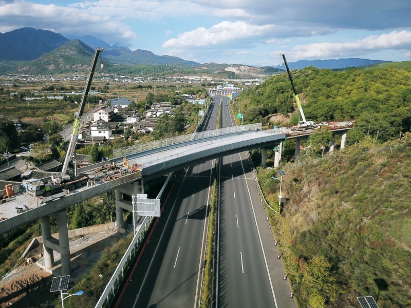 10月28日,丽江古城至宁蒗高速公路项目拉市互通A匝道钢箱梁顺利顶推到位,标志着项目先行建设段全部钢结构桥梁桥跨结构安装全部完成。拉市互通A匝道钢箱梁为上跨大理至丽江高速公路而设,桥跨56米,转弯半径200米,钢结构总重量约320吨。