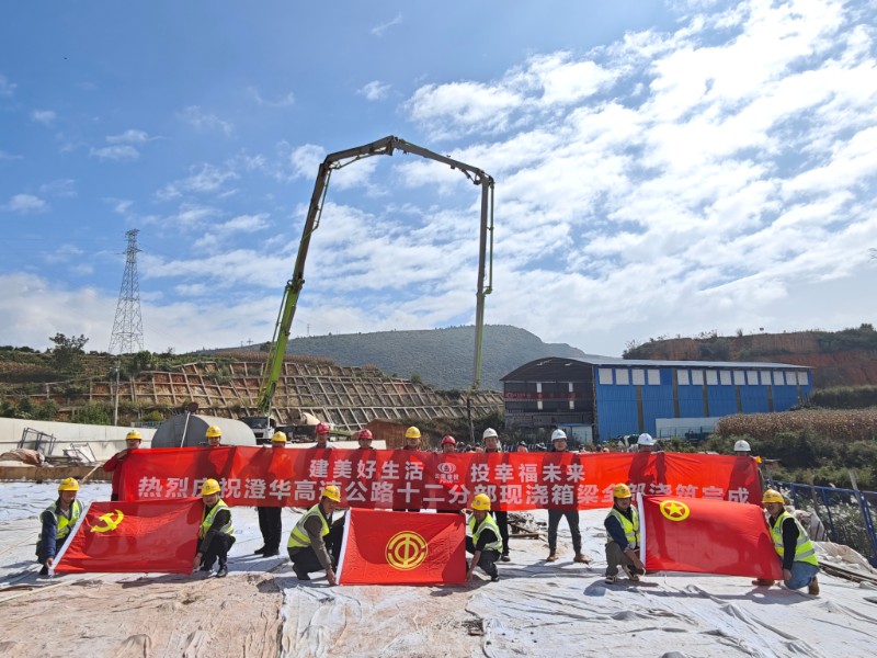 10月25日,澄江至华宁高速公路项目华宁南枢纽H匝道桥现浇箱梁顺利完成浇筑,十二分部现浇箱梁工程圆满收官。十二分部范围内现浇箱梁共有9联,包含预应力混凝土现浇箱梁4联、普通混凝土箱梁5联,混凝土设计总方量6100余立方米,现浇支架最高处达25米,多为高支模施工。