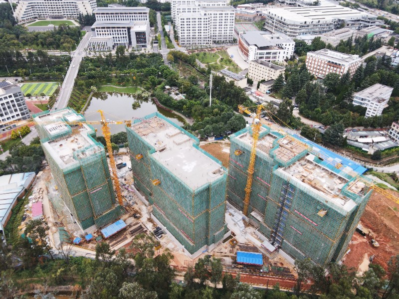 项目位于昆明市盘龙区白龙寺300号西南林业大学白龙校区内部东南角,总建筑面积5.06万平方米,总投资约2.397亿元,地上共设计3栋学生宿舍,均为地上11层,设824间宿舍,3792张床位,地下设计一层隔震层及一层地下车库。