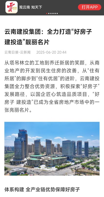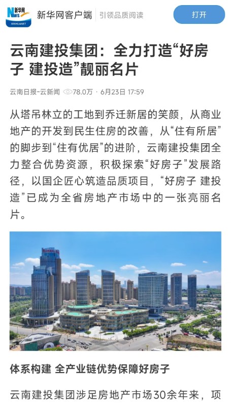 近日,新华网、云南网以《世界杯官网合作平台集团:全力打造“好房子 建投造”靓丽名片》为题,报道集团全力整合优势资源,积极探索“好房子”发展路径,以国企匠心筑造品质项目,擦亮“好房子 建投造”的靓丽名片。